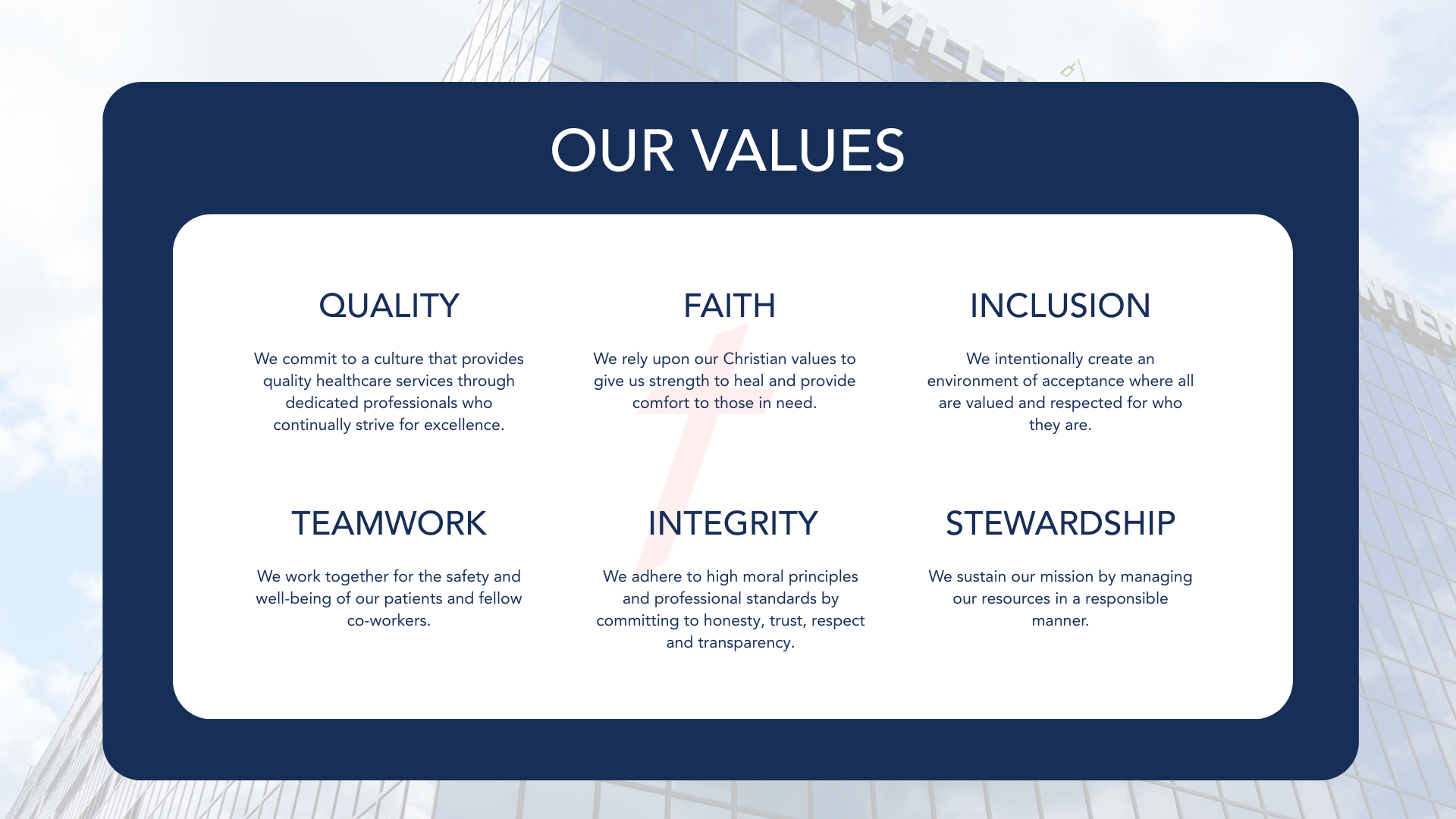 - Chaplain’s Corner devotions over the announcement speakers and weekly on Sundays via company intranet