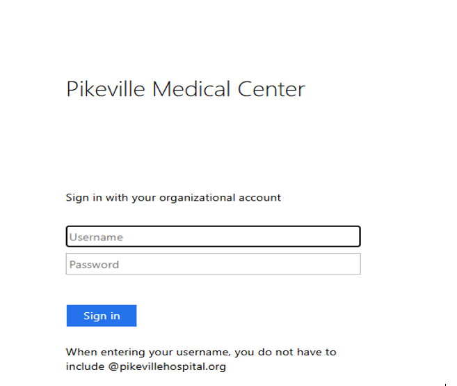 Then you will be prompted to the login screen that will display Pikeville Medical Center. Here you will enter in your username and password.